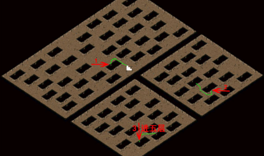 前三层很简单按U看白点就能进入下层,记住自己出门的点可以用高级随机飞